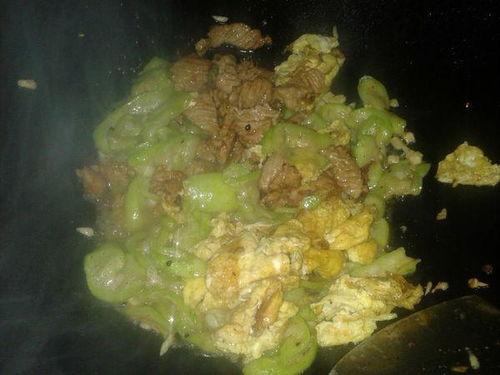 4. 加入水瓜片,翻炒均匀;